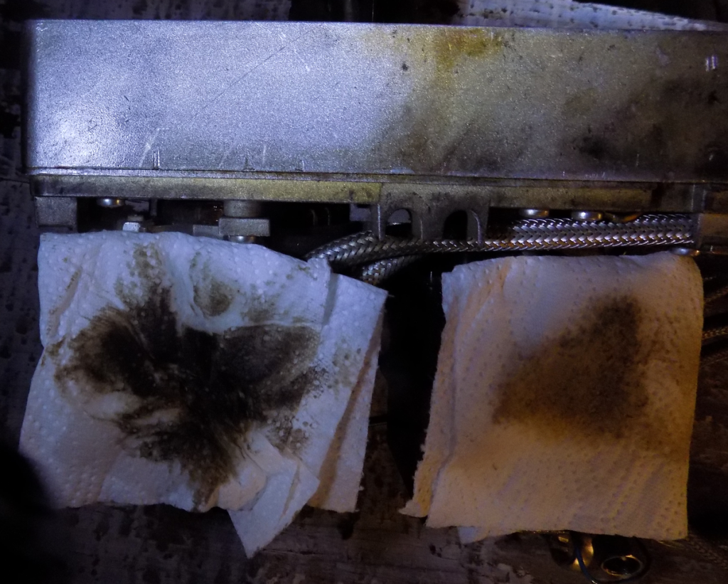 Il semble que la gauche soit moins sale que la droite, il n’y a pas d’intention de dissimuler. Le test est faisable sur toute surface à l’identique, mais peu sont similaires en dépôts hydrocarbonés insolubles dans l’eau.